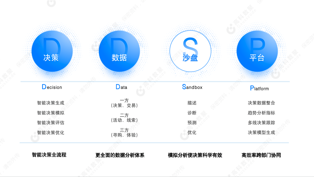 董琳介绍到,巅峰国际推出巅峰国际智慧决策平台DDSP(Decision Data Sandbox Platform),将从市场、销售、服务,以及智造研发等重要应用场景出发,从传统的经验主义决策方式向基于数据驱动的数智化决策全面升级。平台架设30+决策场景沙盘、三方多维数据指标、标签建设能力、百余预测决策模型能力,而且将持续在平台进行新增以及实现模型自我生长。